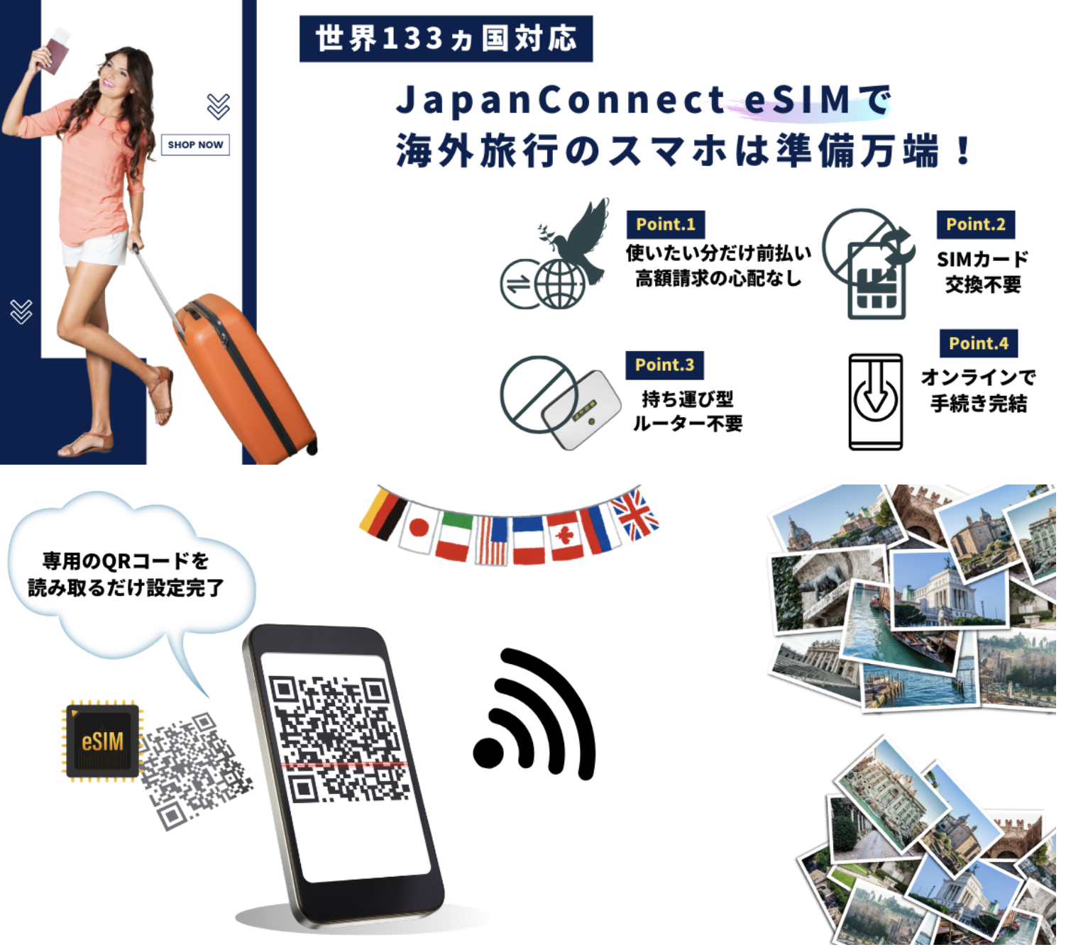 日本ブランドのeSIM「Japan Connect eSIM」は、世界133ヵ国に対応。